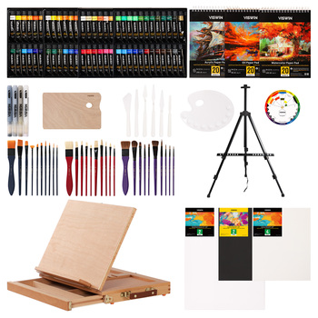 Set di forniture artistiche VISWIN con scatola per cavalletto, pennelli per pittura, tubi acrilici, cuscinetti per acquerello, tela, Palete, pennarello