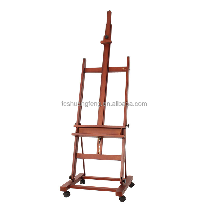 Cavalletto di legno della pittura a olio del faggio rosso con la tavolozza HX-3E cavalletto francese con le ruote, scatola portatile di schizzo di rotolamento